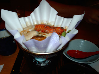 My delicious seafood Kaminabe! (Paper steamboat) Yummy! Fresh Sashimi! Slurp!